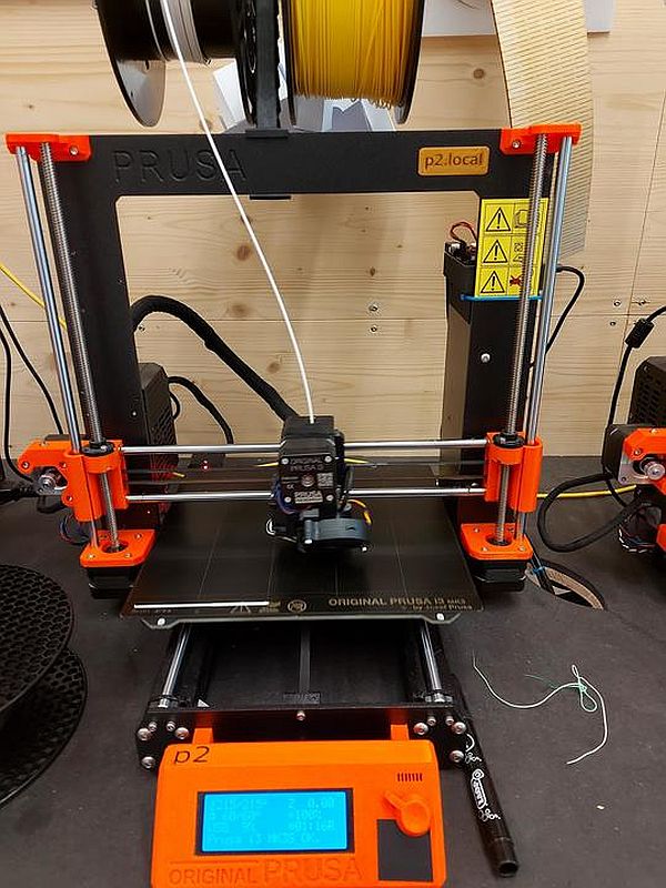 Der Prusa i3 Mk3s hat sich aus dem Open Source 3D-Druck Projekt „RepRap“ entwickelt. Das heißt, die Konstruktionspläne und die Programme des 3D-Druckers sind frei verwendbar. Viele Bauteile des 3D-Drucker sind ebenso Druckteile, also der Drucker „repliziert“ sich selber.