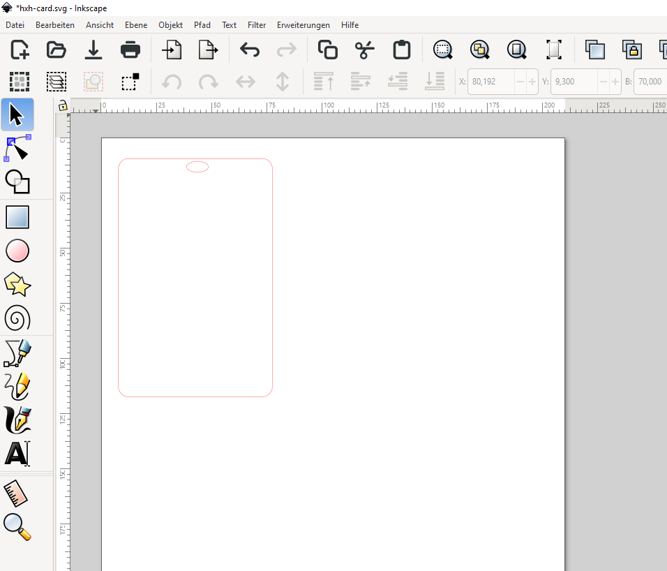 Zeichne in Inkscape die Grundform der Karte, mit einem Loch damit es als Schlüsselanhänger verwendet werden kann.