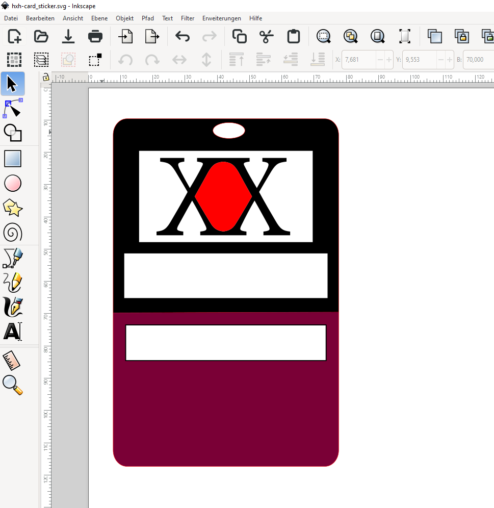 Zeichne in Inkscape die Grundform der Karte, mit einem Loch damit es als Schlüsselanhänger verwendet werden kann.